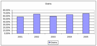 Темпи зростання видатків на освіту у відносних показниках до соціальних видатків ,мають досить не значний приріст (рис.2.9.)