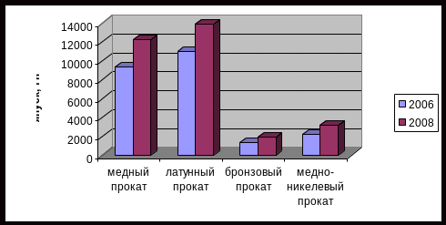 | Прокат | 2006 год, факт, тн. | 2008 год, план, тн. | Отклонение 2008г. от 2006г., тн. | Отклонение 2008г. от 2006г., % |