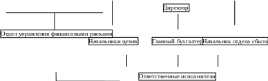 Отдел управления риском является логичным дополнением к традиционно самостоятельным функциональным подсистемам предприятия и располагается на одном управленческом уровне с ними. Отобразим, на рисунке 3, иным образом, но не меняя сути, схематично структуру управления при введении отдела управления риском. Здесь наш отдел координирует деятельность функциональных подразделений предприятия через ответственных исполнителей.