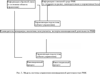 Однако в данном комплексе отсутствует, как представляется, один из наиболее эффективных для подсистемы инновационной деятельности РМК - метод логистического управления 15. Модель системы управления инновационной деятельности РМК представлена на рис. 5.