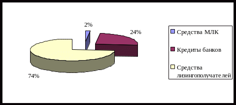 В целом за весь период деятельности МЛК структура финансирования лизинговых сделок приведена на рисунке 7.