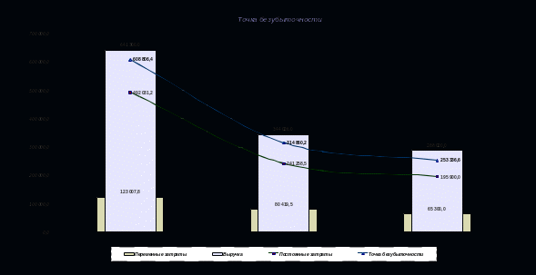 | Точка безубыточности | 608806,4 | 314860,2 | 253336,6 |