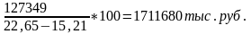 1711680 * 22,65 / 100 = 387695тыс. руб.