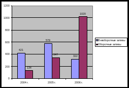 Темп роста собственного капитала направлен в сторону снижения: со -70,09% в 2004 г. до -55,96% в 2006 г. Темп роста кредиторской задолженности: 70,73% в 2005 г. и 53,53% в 2006 г. Все это свидетельствует о кризисной ситуации в организации. (табл. 2.1.2)