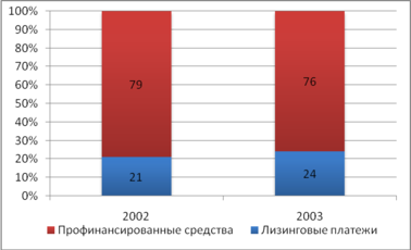 Отсюда среди трудностей работы в регионе участники рынка отмечают ограниченность доступа к финансовым ресурсам. Следовательно, падает и доля профинансированных лизинговыми компаниями средств в общей сумме текущих и заключенных договоров (28% в первом полугодии 2003 года против 40% в аналогичном периоде 2002 года). В этом плане более уверенно чувствуют себя на региональном рынке столичные лизинговые компании. []