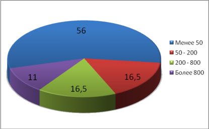По результатам исследования, "Эксперт-Урал" 56% всех лизинговых договоров - это сделки стоимостью менее 50 тыс. долларов, и лишь 11% приходится на сделки дороже 800 тыс. долларов.