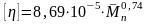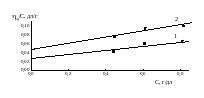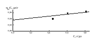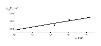 | Объём жидкости, мл | Концентрация раствора, г/дл | Среднее время истечения, с | ηотн. | ηуд. | ηуд/С., дл/г |