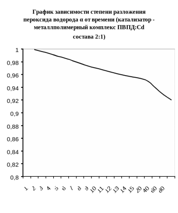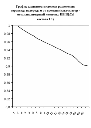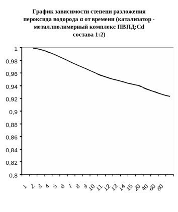 Каталазная активность мталлполимерного комплекса ПВПД:Cd2+ состава (1:2)