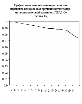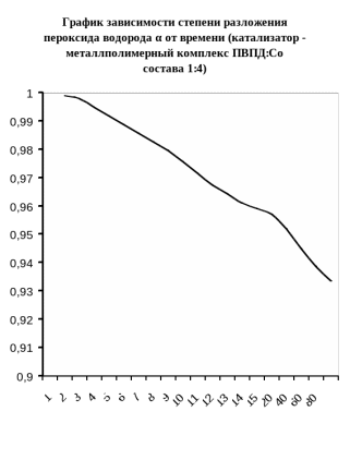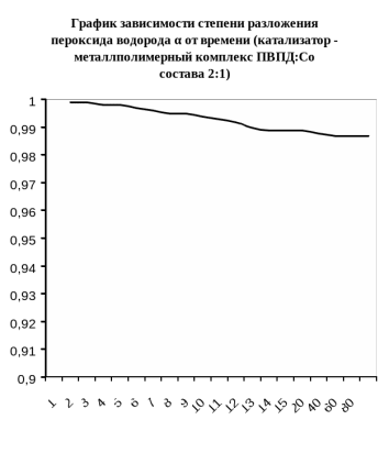 Каталазная активность мталлполимерного комплекса ПВПД:Cо2+ состава (1:6)