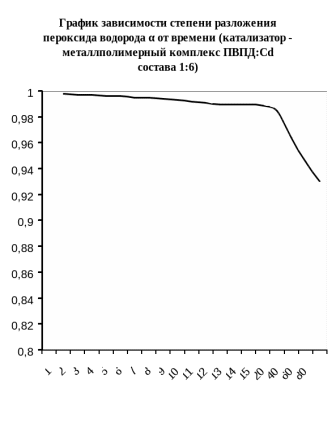 Каталазная активность мталлполимерного комплекса ПВПД:Cd2+ состава (1:6)