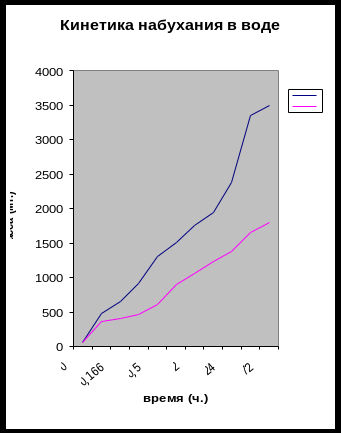 5) График зависимости строим в координатах OX – время ; ось OY – масса гидрогеля в измеряемый момент времени.