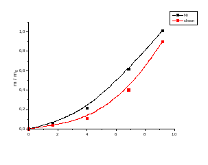 Рис. 7 Кривые вода–этанол – отношение m/m0 гидрогелей АА - АК - ПЭИ чистый и с «вшитым» металлом никелем
