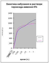 Рис.5 Кинетика набухания гидрогеля АА - АК - ПЭИ чистый и с «вшитым» металлом никелем в NH4OH 5%