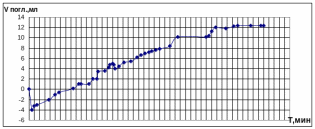В 1985 году [23] в МИТХТ О. Н. Темкиным и Г. М. Шуляковским при исследовании реакции карбалкоксилирования ацетилена в системе PdBr2 - PPh3 - HBr - н-бутанол - диметилсульфоксид были обнаружены периодические изменения скорости поглощения газовой смеси (CO и C2H2) и цвета каталитического раствора от желто - оранжевого до зелено - бурого. Колебания в условиях опыта длятся 9 часов с периодом около 30 минут; амплитуда колебаний скорости поглощения газа 0,4 моль./л*час.; амплитуда колебаний значений платинового электрода 300 мВ. Выходу системы на колебательный режим предшествует индукционный период, продолжительность которого зависит от состава катализатора и условий проведения процесса. Характер изменения скорости поглощения газа в индукционный период различный, а потенциал платинового электрода (EРt) понижается от 630 - 500 мВ до 560 - 200 мВ в зависимости от условий опыта. По истечении индукционного периода происходит резкое увеличение скорости поглощения смеси CO и C2H2, уменьшение Eрt от 560 - 250 мВ до (+50) - (-50) мВ и изменение цвета раствора. Устойчивые колебания начинаются после определенной раскачки системы, которая выражается в форме нарастающих или затухающих по величине амплитуды и частоте колебаний. При удельной скорости подачи исходного и Vуд = 1,1мин-1 (состав газ CO/C2H2 = 1) продолжительность раскачки составляет от 6 до 12 периодов, а частота колебаний уменьшается от 30 - 20 до 6 - 1,5 кол/час. Устойчивые колебания сохраняются в течение опыта. Амплитуда колебаний потенциала платинового электрода на участке устойчивых колебаний от 330 до 212 мВ.