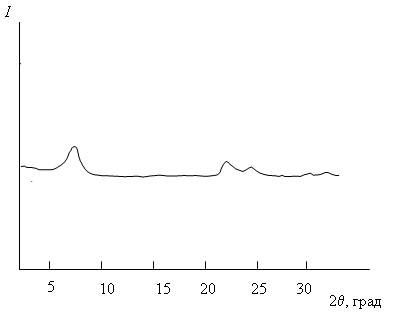 Дифрактограмма природной глины содержит характерный пик в области 2 =7,53 (d =1.1 нм), соответствующий Брегговскому периоду расположения гетерогенных областей и отвечающий за расстояние между базальными поверхностями монтмориллонита (рис.1).