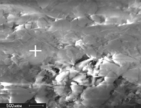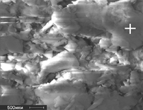 На электронных микрофотографиях бентонита (рис. 3) частицы монтмориллонита имеют вид крупных и мелких чешуек в форме листовых агрегатов. Встречаются агрегаты с хлопьевидными очертаниями, складчатые образования. Видны частицы, отличающиеся по размерам и форме, объединенные в ультрамикроагрегаты и агрегаты со слабо- и высокоориентированным в микроблоки расположением. По типу, связанному с составом и условиями образования, по классификации Е.М. Сергеева, микроструктура исследованных образцов отнесена к ячеистой, характеризующейся образованием крупных микроагрегатов, контактирующих между собой по типу базис-базис, базис‑скол. Отмечаются поры: межчастичные, образованные неплотностями прилегания первичных частиц; межмикроагрегатные, большей частью щелевидные, различных размеров.