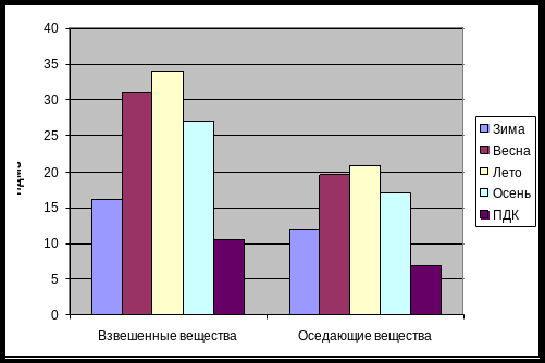 Как показывают данные таблицы 14 и рисунка 3, наиболее высокие значения БПКполн установлены в речной воде до сброса стоков зимой и весной, которые превышали ПДК на 8 и 6, 5 % соответственно, после сброса – зимой - в 1, 9, весной и летом – в 1, 8 раза, осенью значение этого показателя снижалось, но все же превышало уровень ПДК на 27 %.