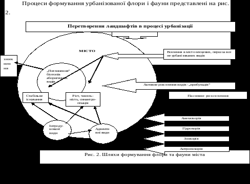 Процеси формування урбанізованої флори і фауни представлені на рис. 2.