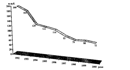 Протягом 2006 р. усім споживачам області відпущено 101,4 млн. м3 води, що на 5,3% м менше, ніж у 2002 р. і на 2% більше, ніж у 2004 р. Населенню відпущено 35,3 млн. м3. Воду на комунально-побутові потреби відпускали 200 підприємств, у яких на балансі знаходилось 278 водопроводів, 64 окремі водогінні мережі, 570 свердловин. Ними із природних водних об'єктів, що пов'язано із зниженням або припиненням виробничо-господарської діяльності суб'єктів господарювання. Відповідно зменшився забір води для використання в розрахунку на душу населення: від 199 м3 у 1992 р. до 122 - у 1995 р. і до 75 м3 - у 2006 р. (рис. 2.3).