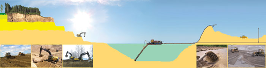 Підвідний видобуток піску з дна водойм в обводнених кар'єрах може вироблятися за допомогою екскаваторів-драглайнів, канатних скреперів, землечерпалок, але найбільш ефективний гідромеханізований спосіб видобутку.
