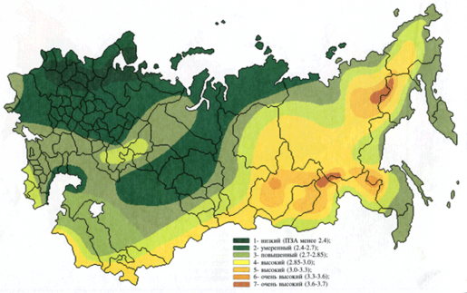 Рисунок 2. Индекс самоочищения атмосферы осадками и растительностью (по материалам сайта http://www.nii-atmosphere.ru)