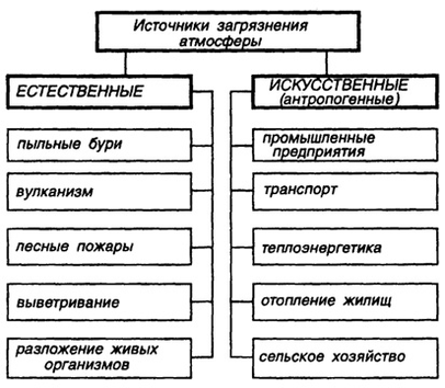 Загрязнение атмосферы может иметь естественное (природное) и искусственное (антропогенное) происхождение (см. рис. 4).