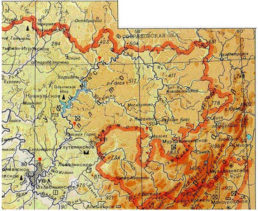 исунок 7 – Физическая карта территории водосборного бассейна реки Уфы