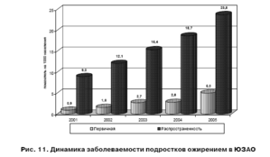 Рис. 1.1 – Динамика заболеваемости подростков ожирением в ЮЗАО