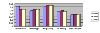 Как видно из диаграммы практически во всех районах наблюдается рост ИЗВ. Исключение составляет школа № 34 и район военного городка.
