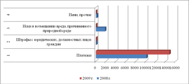Рис.1. Поступление средств за загрязнение окружающей природной среды за 2008 – 2009 г.г.