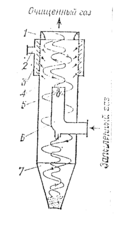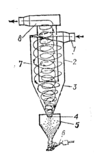 Разновидность прямоточных циклонов представляют появившиеся варианты вихревого циклона. Эффективность конструкции вихревых циклонов достаточно высока и приближается к степени очистки достигаемой в электрофильтрах.