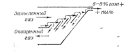 Своеобразный смерч, образующийся в циклоне, пятой опирается о дно пылесборного бункера. При этом в центре смерча винтообразное движение газа направленно вверх. Нарушение вращательного движения газа в бункере неизбежно приводит к заметному снижению степени очистки.