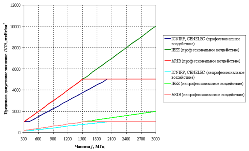 | Международный | ICNIRP "Guidelines for limiting exposure to time-varying electric, magnetic, and electromagnetic fields (up to 300 GHz)" | рекомендательный |