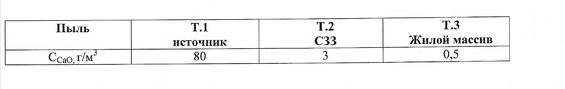 1 т – непосредственно около источника. Т, пыль ССаО, г/м3 =80