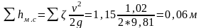Σh1-2 = hр+hв+hсам+Σhм.с =0,05+0,08+0,15+0,06=0,33м