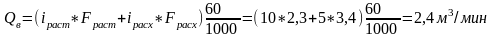 iрасх - интенсивность подачи воздуха в расходном баке, 3-5 л/сек м2;