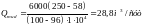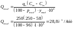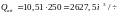 Расход стоков qw = 250м3/ч