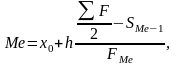 – нижняя граница медианного интервала;