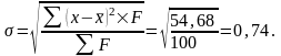 Расчет среднего квадратического отклонения показывает, что отклонение балла от средней арифметической составляет в среднем около 0,74 балла.