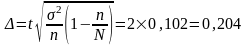 При вероятности допущения ошибкой на уровне P=0,954 находим предельную ошибку при коэффициенте доверия t=2. значения t можно найти по таблице значений интервала вероятности по справочнику.