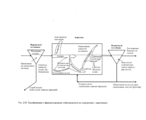 Основную роль в очистке сточных вод играют процессы возвращения вещества, протекающие внутри клеток микроорганизмов. Эти процессы, как правило, заканчиваются окислением вещества с выделением энергии и синтезом новых веществ с затратой энергии. Внутри клеток микроорганизмов происходит непрерывный и сложный комплекс химических превращений. В клетках в строгой последовательности протекает большое количество реакций с высокой скоростью. Скорость реакций и их последовательность зависит от наличия ферментов, которые выполняют роль катализаторов. Особенностью ферментов является то, что каждый из них воздействует только на определённое химическое соединение и катализирует одно из многих превращений, которым подвергается данное химическое соединение. При изменение состава и концентрации веществ меняется и состав ферментов. Таким образом, каждую реакцию катализирует один соответствующий фермент. При этом продукт одной реакции служит субстратом для следующей. Скорость образования и распада ферментов зависит от условий роста микроорганизмов и определяется скоростью поступления в клетку веществ, ингибирующих и активирующих биохимические процессы. Клетки каждого вида микроорганизмов имеют определённый набор ферментов. Некоторые из них независимо от субстрата постоянно присутствуют в клетках микроорганизмов. Такие ферменты называются конститутивными. Другие ферменты синтезируются в клетках вследствие каких-либо изменений в окружающей среде. Например, изменения состава или концентрации загрязнений сточных вод. Эти ферменты позволяют в период приспособления микроорганизмов к изменению среды, поэтому называются адаптивными. Сроки адаптации различны и продолжаются от нескольких часов до десятков и сотен дней [10]. Если в сточных вода содержится несколько веществ, то процесс окисления будет зависеть от количества и структуры всех растворённых органических веществ. В первую очередь будут окисляться те вещества, которые необходимы для создания клеточного материала. Порядок окисления веществ будет сказываться на продолжительности очистки сточных вод. Для разрушения сложной смеси органических веществ необходимо 80 – 100 различных ферментов. Суммарные реакции биохимического окисления в аэробных условиях схематично можно представить в следующем виде: