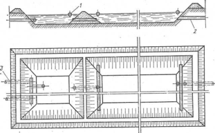 Рис. 13. Схема .двухсекционного пруда дополнительного отстаивания:
