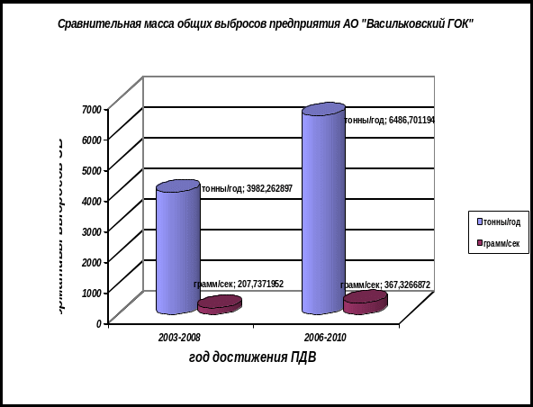 Таблица 26 - Сравнительная масса общих выбросов предприятия АО «Васильковский ГОК»