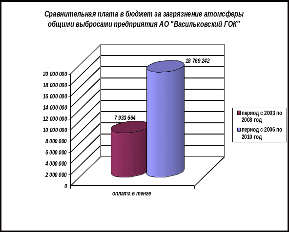 Таблица 25 - Сравнительная плата в бюджет за загрязнение атмосферы общими выбросами предприятия АО «Васильковский ГОК»