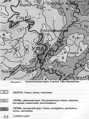 Верхняя часть разреза отложений палеозойской системы, имеющая практическое значение для строительства, представлена пермскими отложениями карбонатно – терригенной и терригенной красноцветной формации уфимского яруса поздней перми. Породы этой формации представлены переслаиванием известняков, доломитов, мергелей и карбонатных аргиллитоподобных глин.