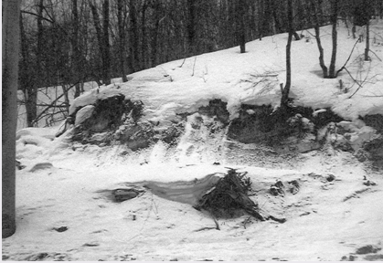 Откос выемки со стороны чётного пути на всём протяжении участка в нижней части подрезан полкой, которая разрабатывалась в 2002г для временного проезда автомобильного транспорта к строительной площадке по переустройству моста на км 1628, пк16271+73,50, с крутизной откоса 1:0,5 высотой от 1÷2,0 м в легко выветривающих грунтах (рисунок 7).