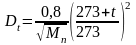 Здесь Мп – молекулярная масса пара жидкости (г/моль); Dt – коэффициент диффузии при температуре воздуха t (см2/с):