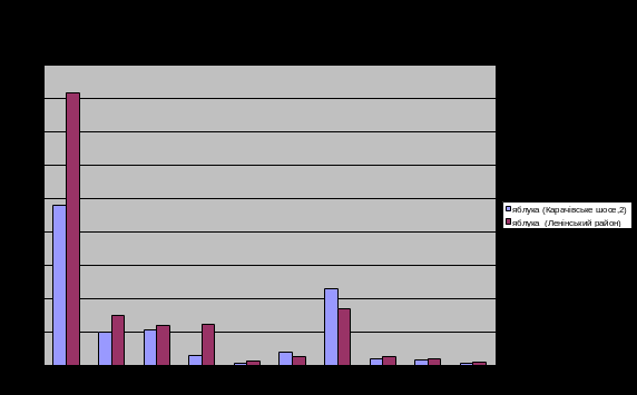 Для більш всебічного аналізу результатів дослідів зразків вважаю за доцільне порівняти дані зразків з аналогічними зразками проб, отриманими в цей самий період, по Карачівському шосе, 2, в Жовтневому районі, м. Харкова.