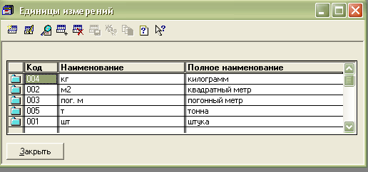 Рисунок 3.4 – Экранная форма справочника «Единицы измерения»
