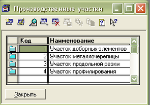 Рисунок 3.6 – Экранная форма справочника «Производственные участки»